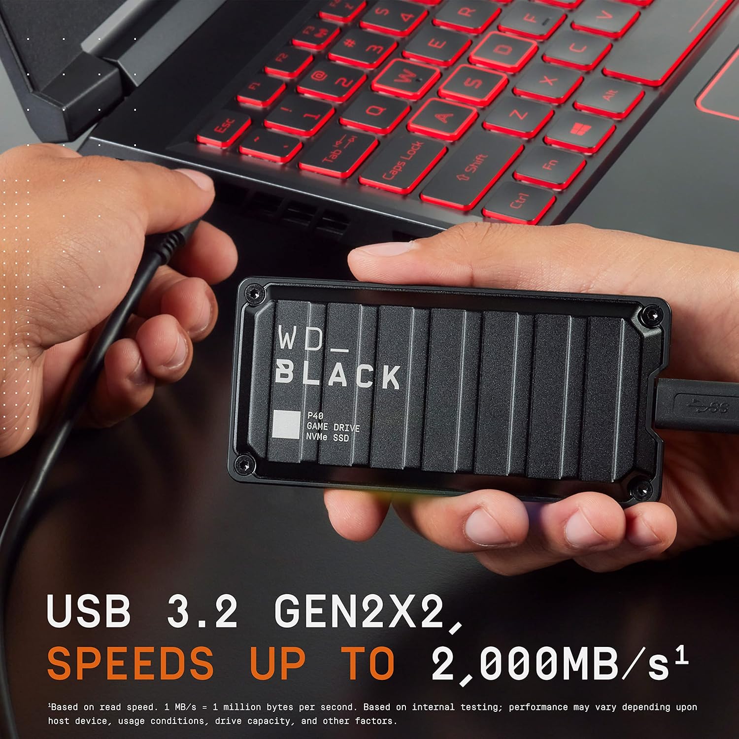 با رابط USB 3.2 Gen2x2 و سرعت تا 2000 مگابایت بر ثانیه، بارگذاری را به overdrive منتقل کنید. (بر اساس سرعت خواندن. 1 مگابایت بر ثانیه = 1 میلیون بایت در ثانیه. بر اساس آزمایش داخلی؛ عملکرد ممکن است بسته به دستگاه میزبان، شرایط استفاده، ظرفیت درایو و سایر عوامل متفاوت باشد.)