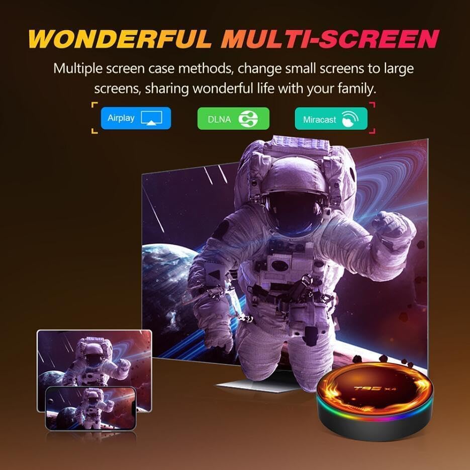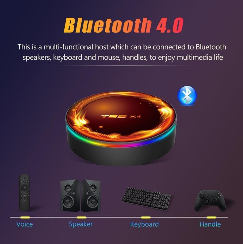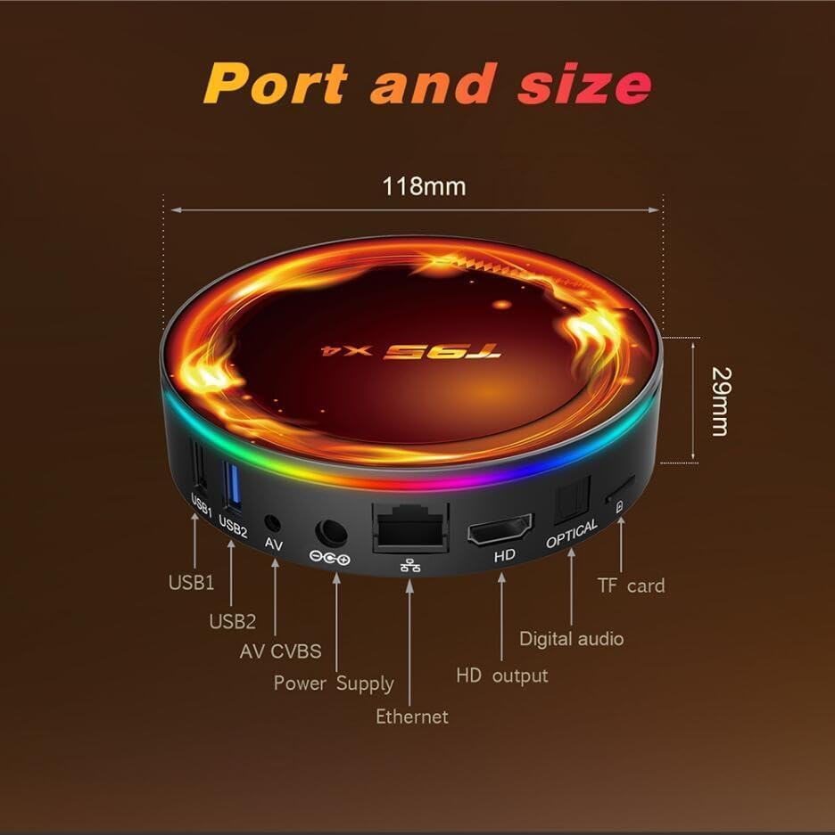 وای فای 6 جعبه تلویزیون هوشمند T95max از WiFi 6، HDMI 2.0، شبکه اترنت 10/100/1000M و بلوتوث 5.0 پشتیبانی می کند و سیگنال WIFI پایدارتری را برای لذت بردن از کیفیت بالاتر ارائه می دهد. هرگز نگران سرعت دانلود پایین نباشید
