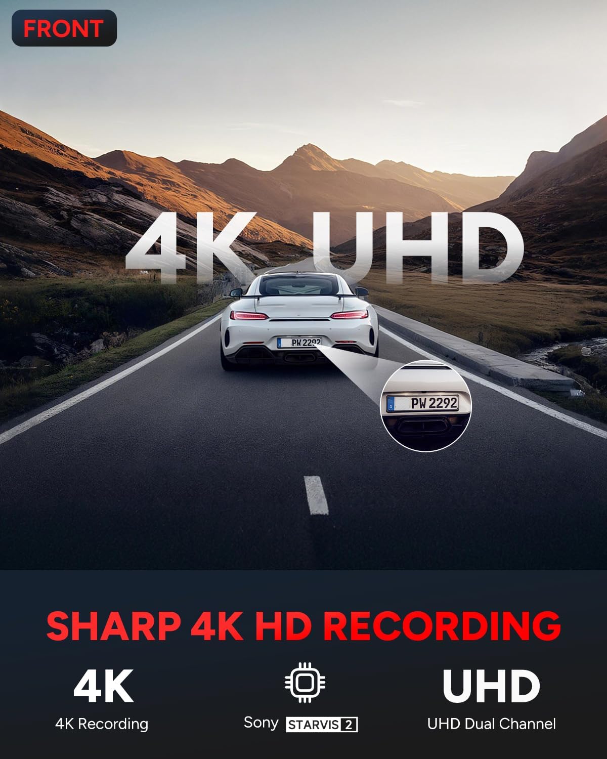 ضبط ویدیوی HDR از جلو (4K/30FPS) را تجربه کنید. دوربین خودرو – دوربین داشبورد مجهز به لنز زاویه باز و حسگرهای تصویر پیشرفته دینامیک است و وضوح فوقالعادهای را ارائه میدهد. جزئیات حیاتی مانند پلاک خودرو را با دقت، در روز و شب ثبت میکند.