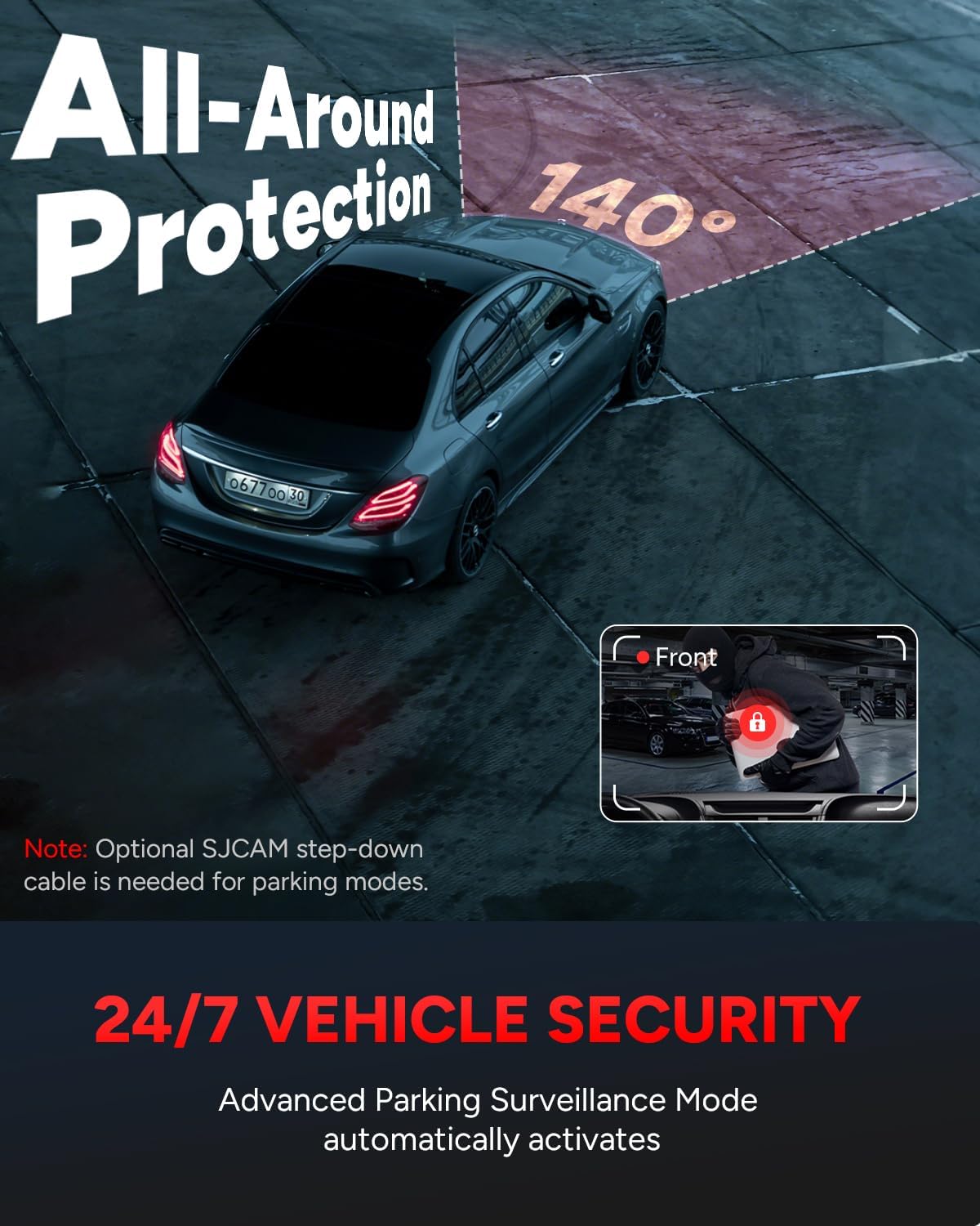 دوربین داشبورد دو کاناله SJCAM از طریق سه حالت پارکینگ تخصصی، محافظت بیوقفه را ارائه میدهد. دوربین داشبورد با تشخیص دقیق حرکت، نظارت را برای امنیت منطقه مورد نظر سفارشی میکند. تشخیص برخورد فعالشده با حسگر G، فوراً فیلم را پس از ضربه قفل میکند، در حالی که بهینهسازی ذخیرهسازی با نرخ بیت پایین، ظرفیت کارت SD را بدون به خطر انداختن محافظت ۲۴ ساعته به حداکثر میرساند.