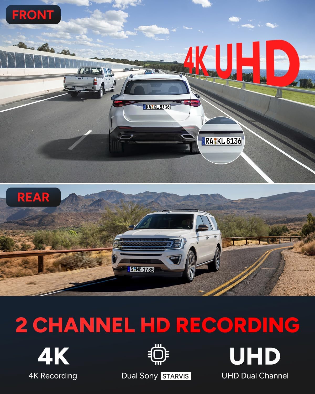 ضبط ویدیوی HDR از جلو (4K/30FPS) را تجربه کنید. دوربین خودرو – دوربین داشبورد مجهز به لنز زاویه باز و حسگرهای تصویر پیشرفته دینامیک است و وضوح فوقالعادهای را ارائه میدهد. جزئیات حیاتی مانند پلاک خودرو را با دقت، در روز و شب ثبت میکند.