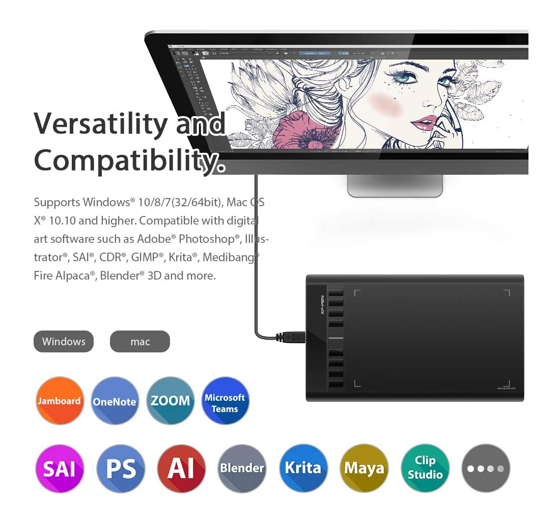 قلم نوری ایکس پی پن مدل «Star 03 V2» به هیچ نوع باتری یا شارژ کردن نیاز ندارد و هزینه اضافی برای شما در بر نخواهد داشت. همچنین، با ویندوز 7، 8 و 10، مک او اس ایکس 10.10 یا بالاتر و تمام اپلیکیشنهای اصلی گرافیکی نظیر فتوشاپ، Painter، Illustrator، Adobe و غیره کار می کند.