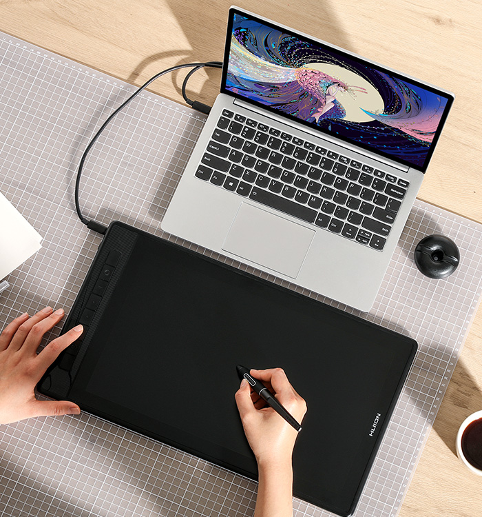 Kamvas Pro 16 (2.5K) دارای یک پورت USB-C است که از سیگنال HDMI و DP پشتیبانی میکند. میتوانید به راحتی و به سرعت آن را با یک کابل USB-C با تمام امکانات به طیف گستردهای از دستگاهها از جمله رایانههای شخصی ویندوزی، مک، تبلتها و تلفنهای اندرویدی متصل کنید تا دادهها، سیگنال نمایش و تا ۱۰۰ وات برق را به طور همزمان منتقل کنید. همچنین میتوانید از کابل ۳ در ۲ (HDMI) استفاده کنید که از کابل ۳ در ۱ پایدارتر و بادوامتر است. با اتصال قدرتمند USB-C از فضای کاری بدون شلوغی لذت ببرید.