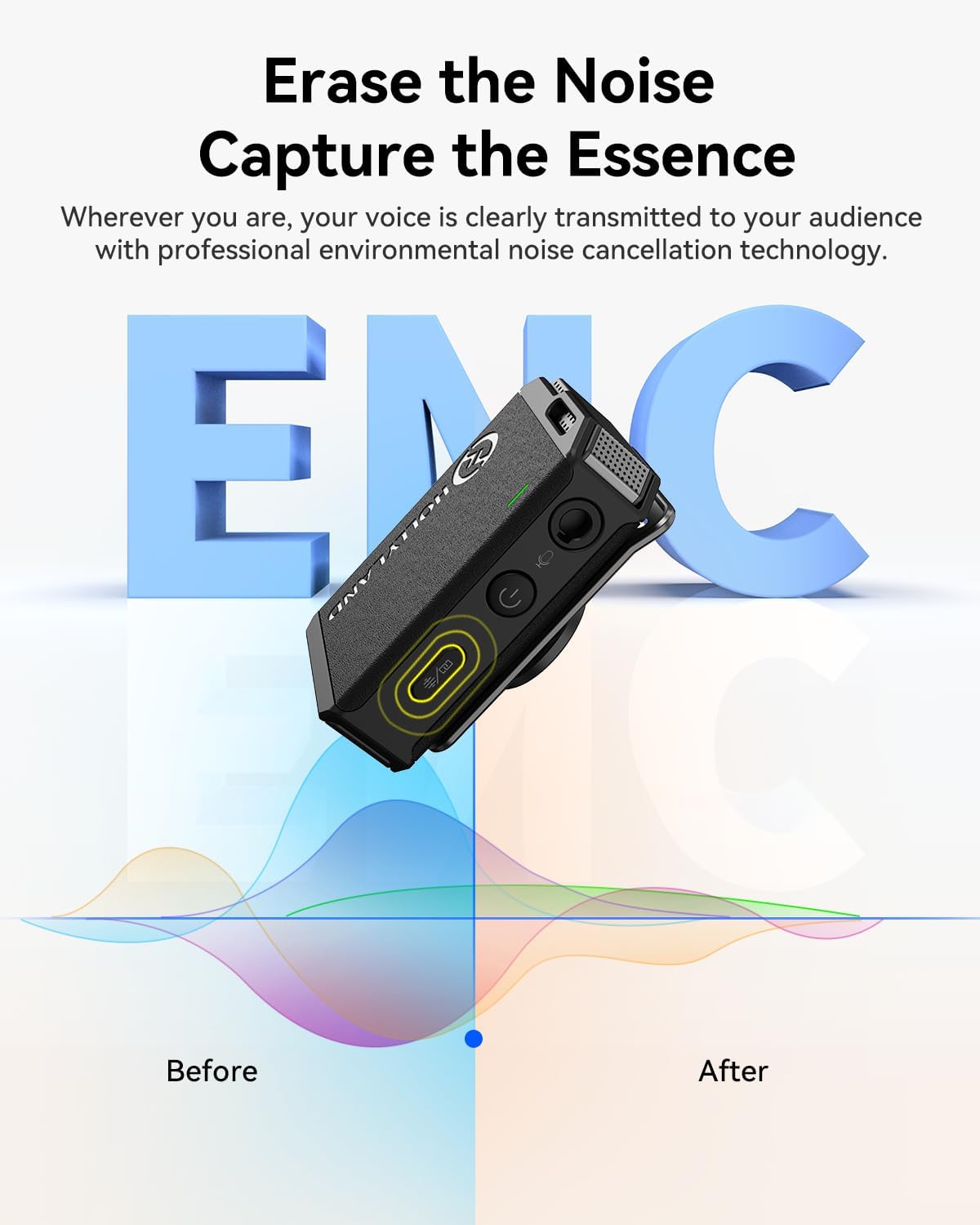 2. کاهش نویز فعال: Lark Max Solo مجهز به فناوری کاهش نویز فعال است که در شرایط پر نویز به کاربر کمک می‌کند تا صدای مورد نظر را با کیفیت بالاتری ضبط کند. ویژگی مورد نظر به طور خاص برای مکان های بزرگ و شلوغ کاربردی است.
