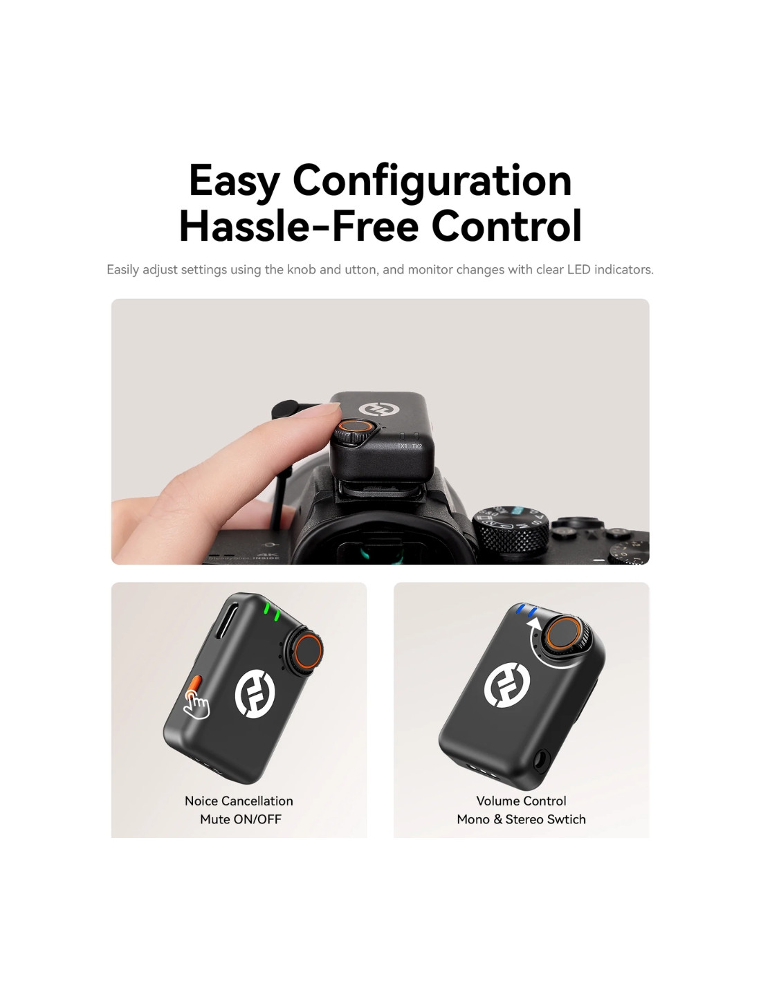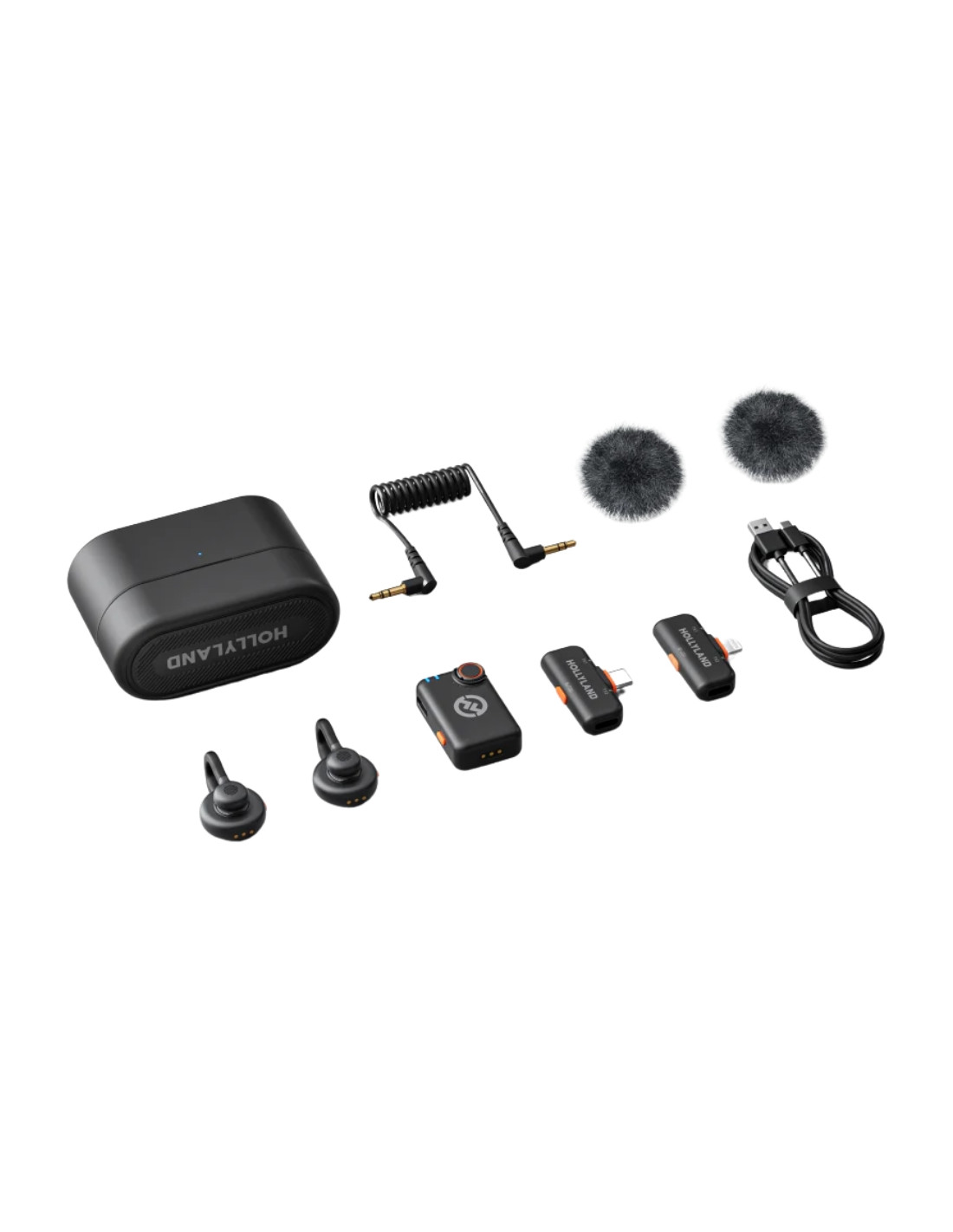 میکروفون بیسیم Hollyland Lark M2S Ultimate Combo شامل دو فرستنده، یک گیرنده دوربین، یک گیرنده لایتنینگ و یک گیرنده USB-C است. میتوانید از این میکروفون با تلفن هوشمند یا آیفون، رایانه یا دوربین خود استفاده کنید. Lark M2S صدای همهجهته متعادل و غنی با عمق ۲۴ بیت ارائه میدهد. این میکروفون دارای نسبت سیگنال به نویز (SNR) 70 دسیبل برای صدای واضح در هر موقعیتی است. این میکروفون حتی نویز محیط را از طریق برنامه LarkSound به دو سطح کاهش میدهد: کم و زیاد. حداکثر برد آن ۳۰۰ متر است و برای محیطهایی با تراکم سیگنال بالا مناسب است.