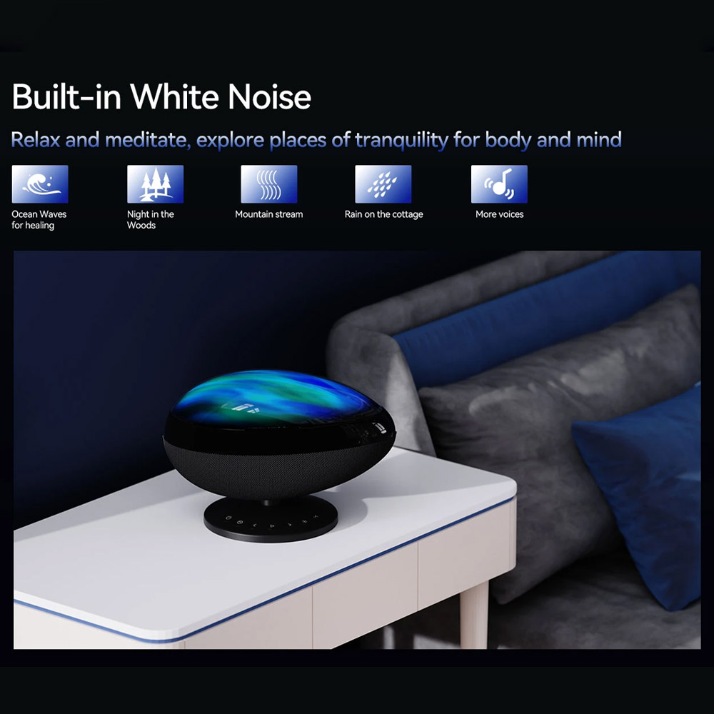 موسیقی از گوشی هوشمند شما و نویز سفید آرامش بخش به لطف بلوتوث 5.0 و بلندگوی داخلی 3 وات، از تجربه کامل پخش موسیقی از طریق تلفن هوشمند خود لذت ببرید. Wanbo EVA به شما امکان می دهد از نویز سفید و موسیقی لذت ببرید تا آرامش و مدیتیشن را تقویت کنید. دستگاه خود را به ویدئو پروژکتور متصل کنید و اجازه دهید ترکیب تصاویر و صدا کیفیت زمان استراحت شما را افزایش دهد.