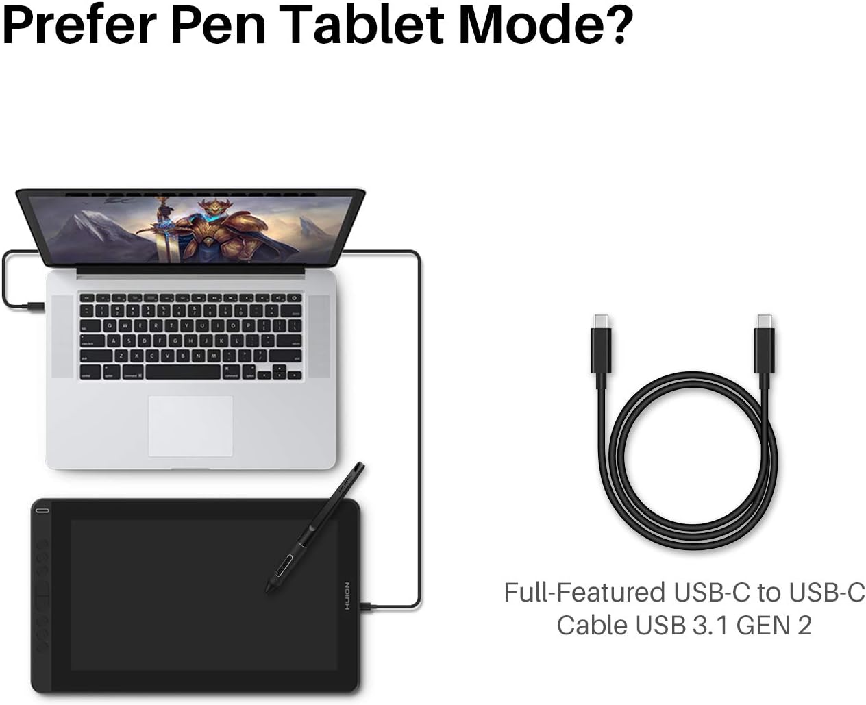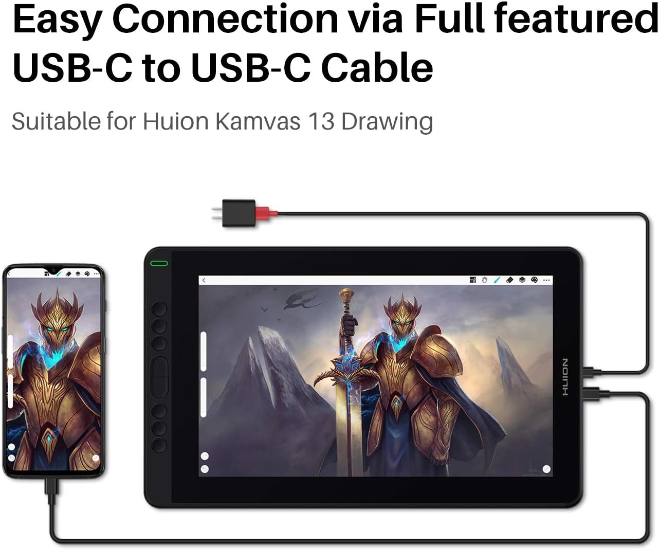 - کابل USB-C به USB-C با مدلهای Kamvas Pro 13 (نسخه 1080P) و Kamvas Pro 16 (نسخه 1080P) سازگار نیست.