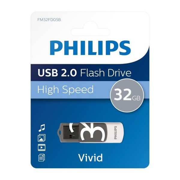 فلش مموری Vivid-FM64FD05B با ظرفیت 32 گیگابایت از برند فیلیپس بوده که دارای رابط USB 2.0 است. جنس بدنه